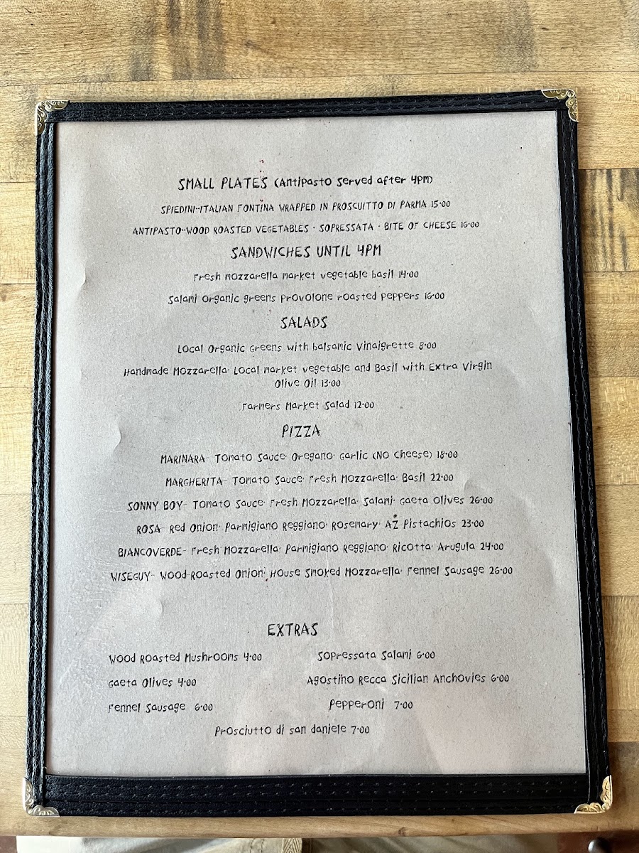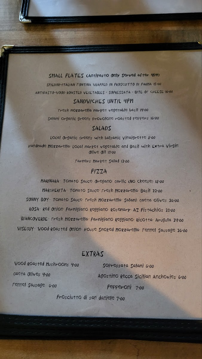 Finally made it here after wanting to come for years. I should not have waited so long. The staff was casual but very friendly and quick. Food was excellent. I mean Excellent. The antipasto was the most unique mix I've seen, a little Japanese, a little Italian, but I'd happily order it again and again. We tried two pizzas, my only complaint is that I didn't have room to try a third. While it's hard to judge every good pizza I've ever had this was at the top. The crust was near perfection and the sauces were fantastic. The care and craft is obvious. Would happily come here again. Just maybe not wait so long this time...