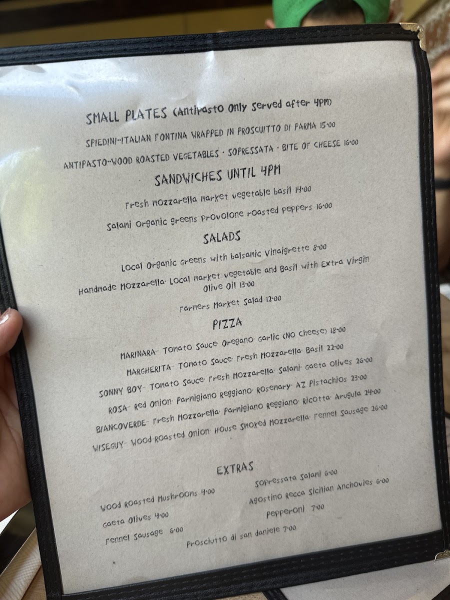 The pizza was delicious, and the garden was fresh and beautiful, full of plants. The wait was long, but we were able to wait at the bar. Since we were traveling, we had our little cat with us, and the place is pet-friendly in the garden area.