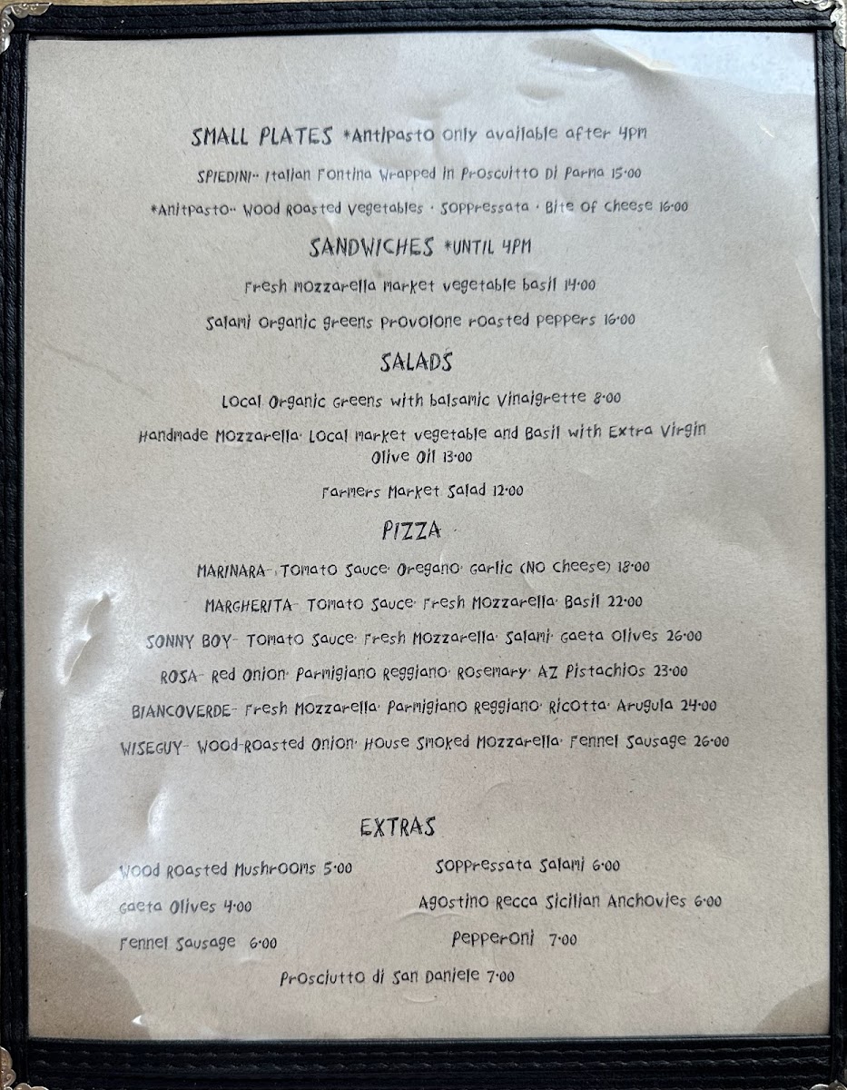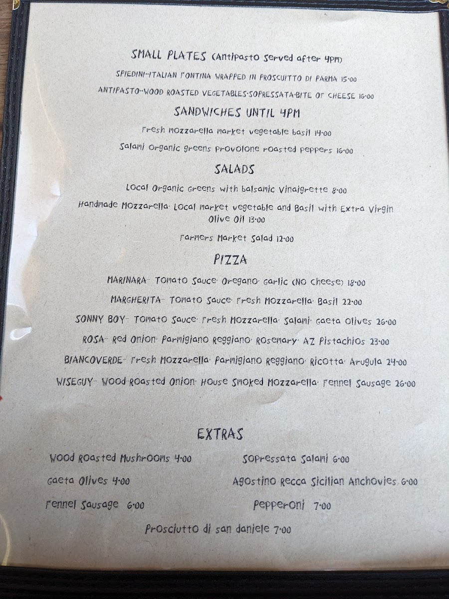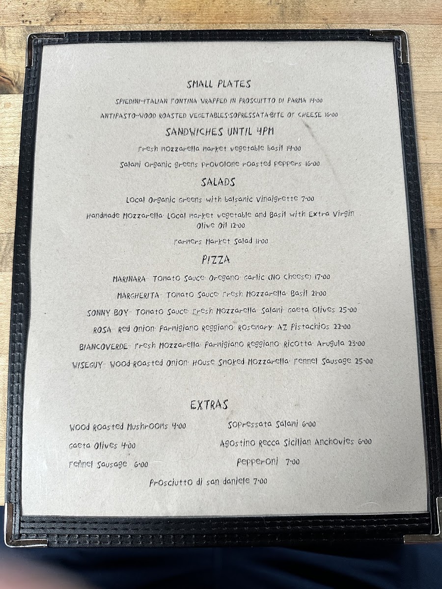 I remember reading an article about the best pizza in the U.S. being in Arizona some years ago and I'm sure my thoughts were like others, how, why? Whats soo great about it? NY pizza Chicago style. But Arizona?? I had my doubts. My first time ever visiting Phoenix though I knew I had to try it and see for myself. Stopped by on a weekday around 2 pm. It wasn't busy but a small place that could fill up fast. The pizza oven easily noticed taking up a large amount of the small space. The menu was simple and offered with sauce vs no sauce options. I was told they rotate some pizzas seasonally so if you have one you like you may not have it again. I've forgotten the name of the pizza I had but I opted for one with some meat and olives on it. Im not a fan of the simple pizzas I want some stuff on it! This pizza was fantastic! To say best in the U.S.? Not in my opinion but, that's what's great about Opinions we all have our own. The crust was perfect. The cheese delightful. I prefer a little more flavor to my sauce but again, that's me. The wine selection was great for a small venue and the bartender knowledgeable about the selections. A single pie was a decent portion for a big guy like myself. If I was hungrier going in I'd of ordered an app as well and been full full. If you've never been to Phoenix you need to try some of this Arizona pizza and decide for yourself if its the best in the U.S.